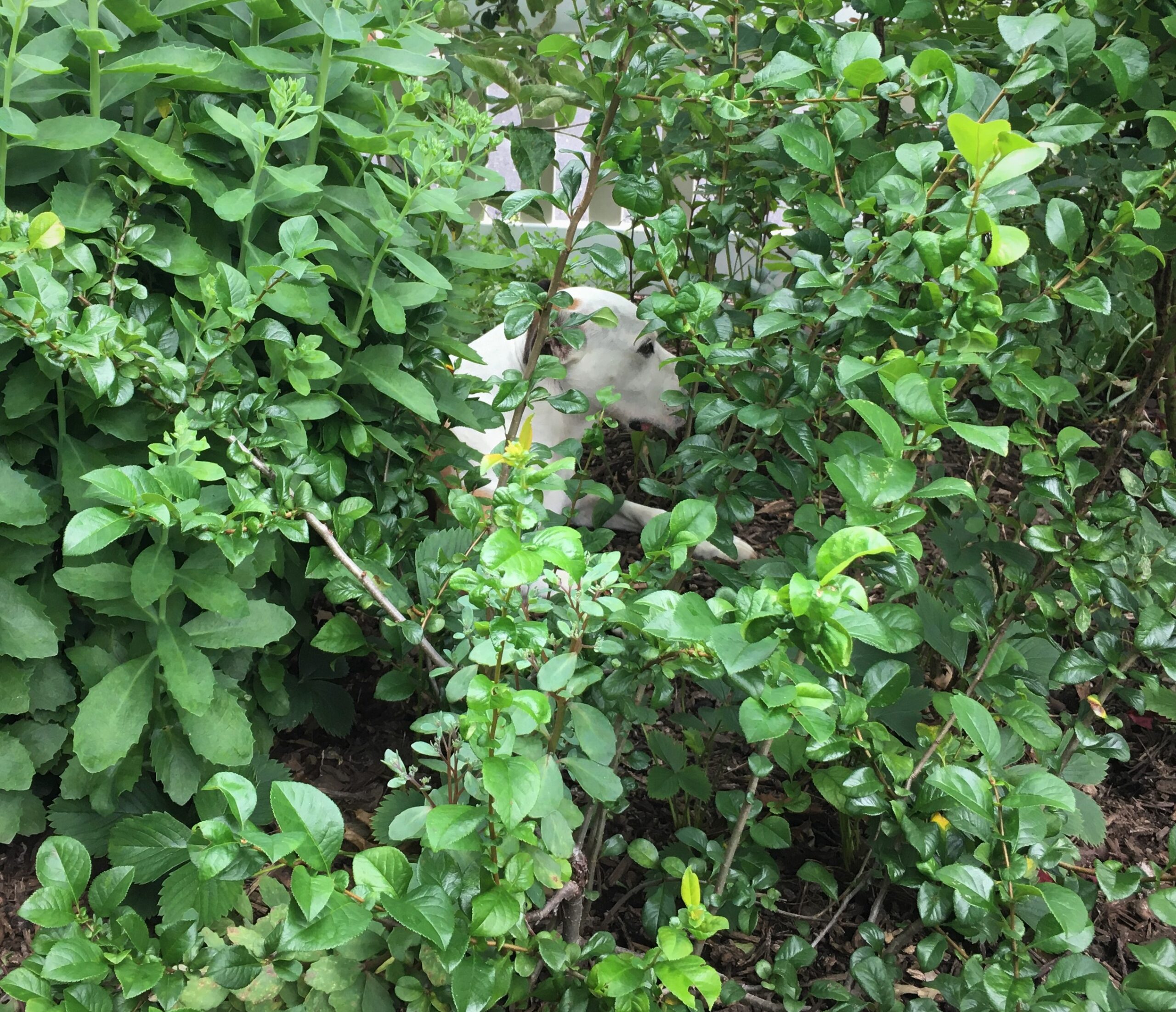 Dexter in the jungle! (Just hiding in the bushes in the garden.)