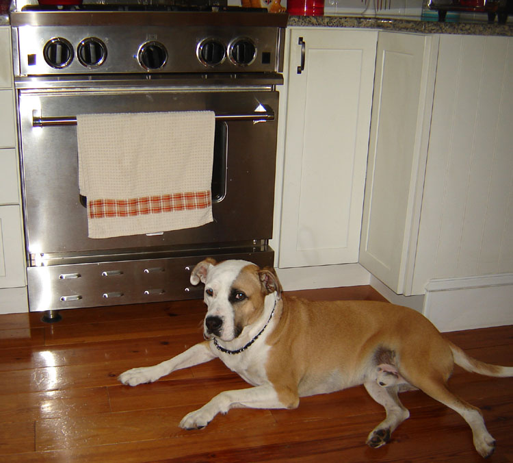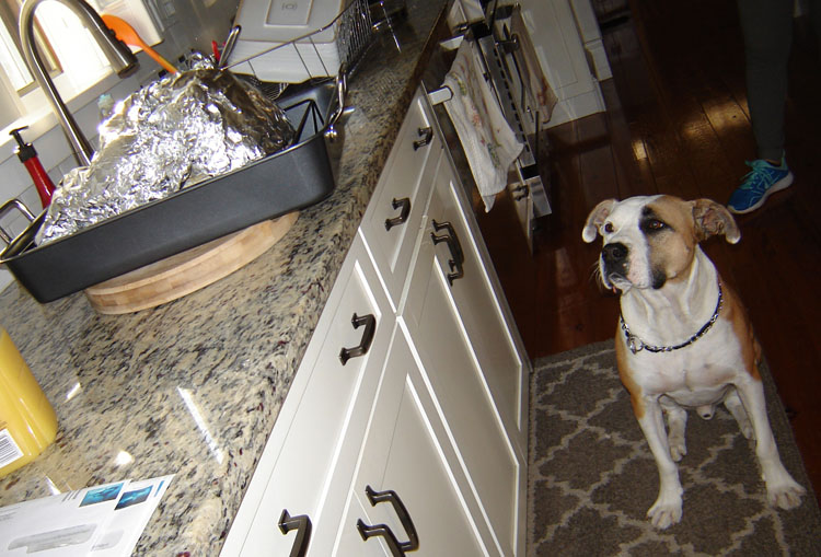 Dexter guarding the oven while the Thanksgiving turkey cooks!